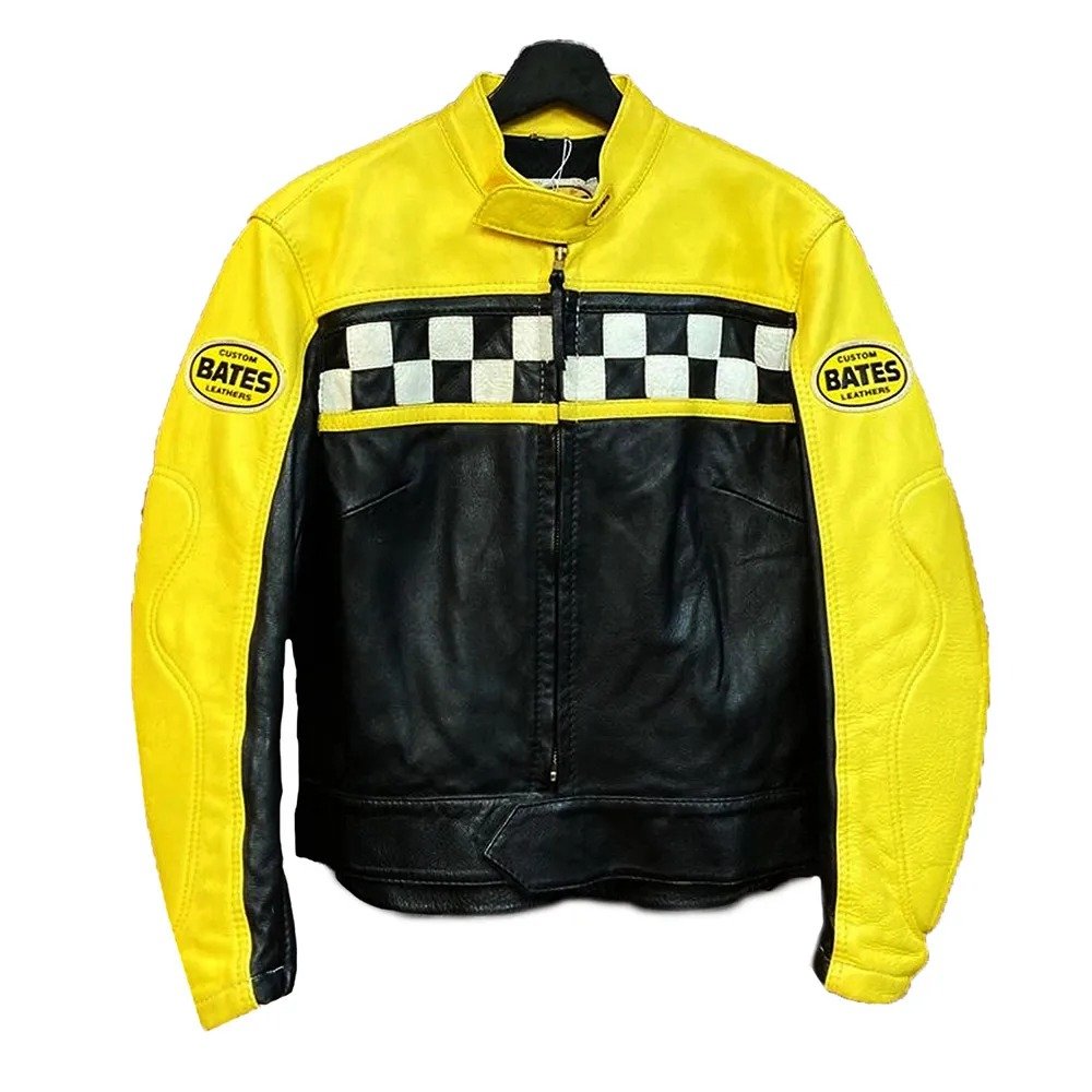 Kendall Jenner Race Flag Cafe Racer Leather Jacket
